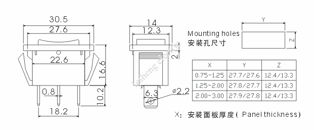 型 號(hào) Model No. | 端子數(shù)Terminal Quanlity | 通斷狀態(tài) Circuitry Trait |