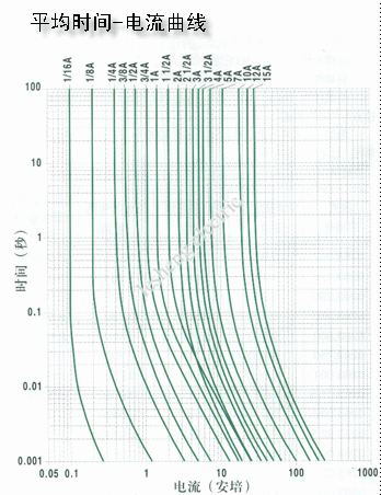 目錄號 | 額定電流(安培) | 額定電壓(伏特) | 最高電阻值(歐) | 熔化熱能值I2t(A2Sec) |