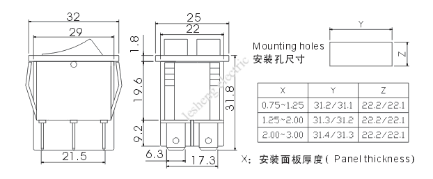 型 號 Model No. | 端子數Terminal Quanlity | 通斷狀態(tài) Circuitry Trait |